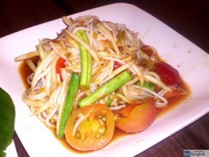 タイに来たからには是非試して頂きたい名物調理がもう1つあります。若いパパイヤを千切りにして、甘くて辛い味付けをしたパパイヤサラダ、ソムタムです。シャキシャキした食感に甘辛いタレが染み込んだタイ独特の味で、タイ人でこれを嫌いという人に出会ったことがないくらい、広く食される料理です。屋台でも頻繁に売られていますが、これにはご注意下さい。出来ればレストランかフードコートで食べることをお勧めします。理由は食材と作り方にあります。タイ人が好むのは沢蟹を加えたソムタムプー、炎天下の屋台で冷蔵庫も無い状態で置かれた沢蟹は危険度100%、とても痛みやすいので、タイ人でも食後に体調不良を訴える人は少なくありません。